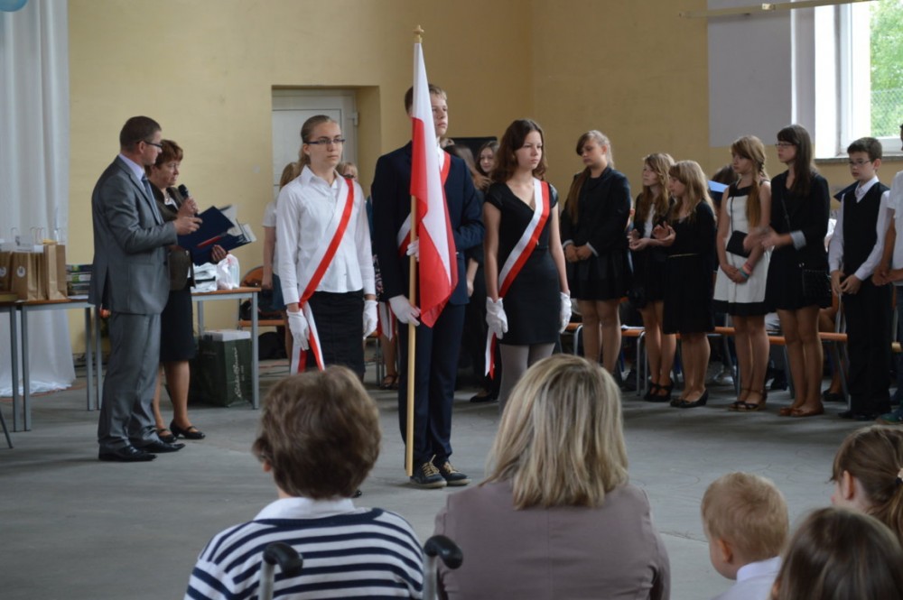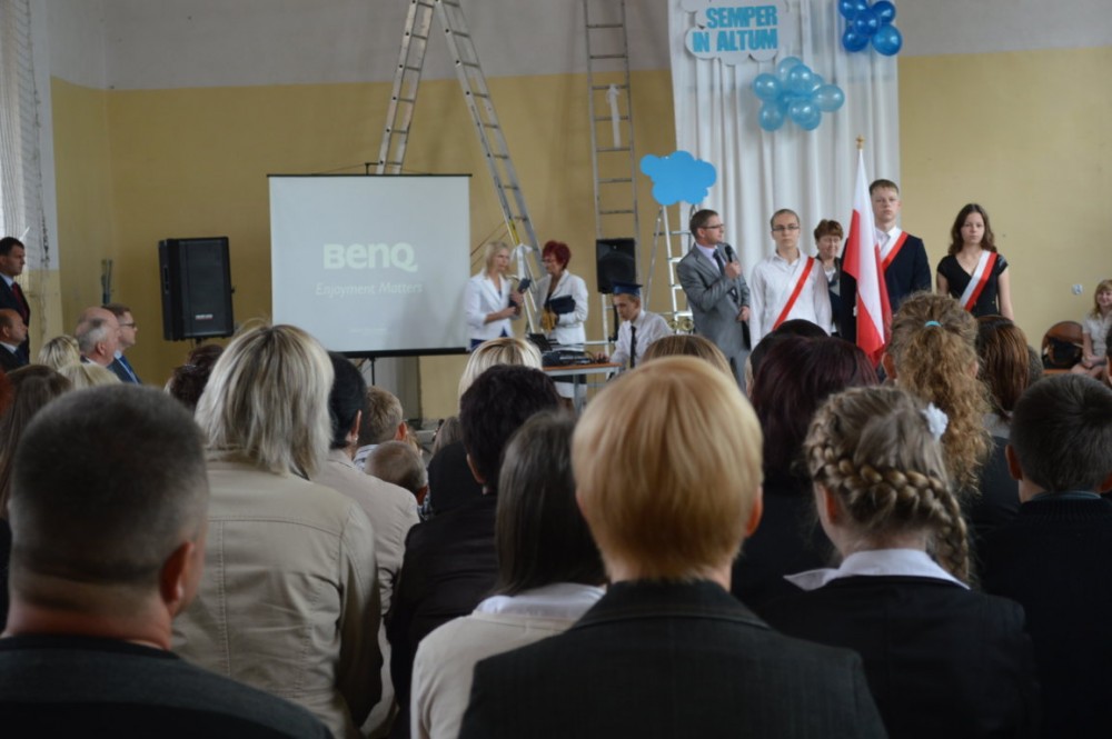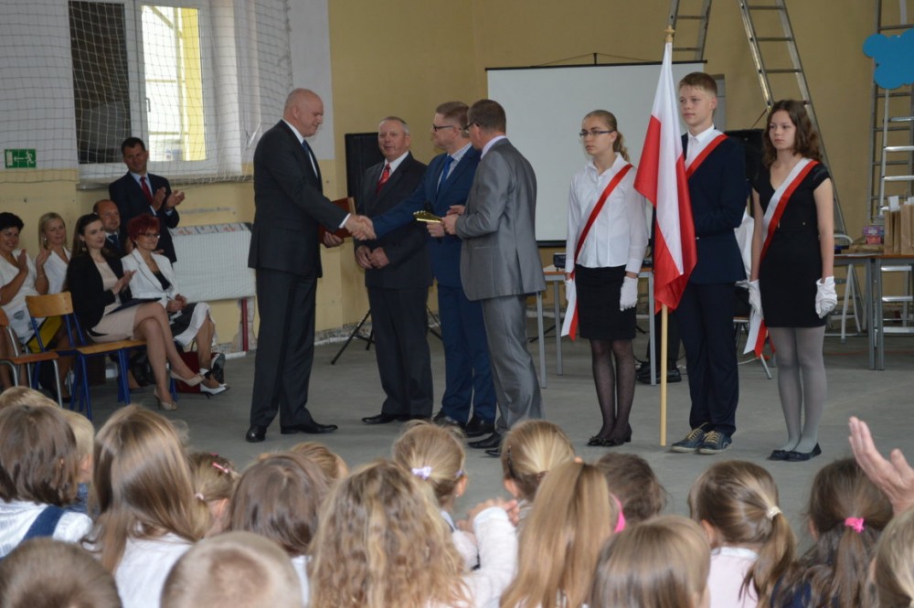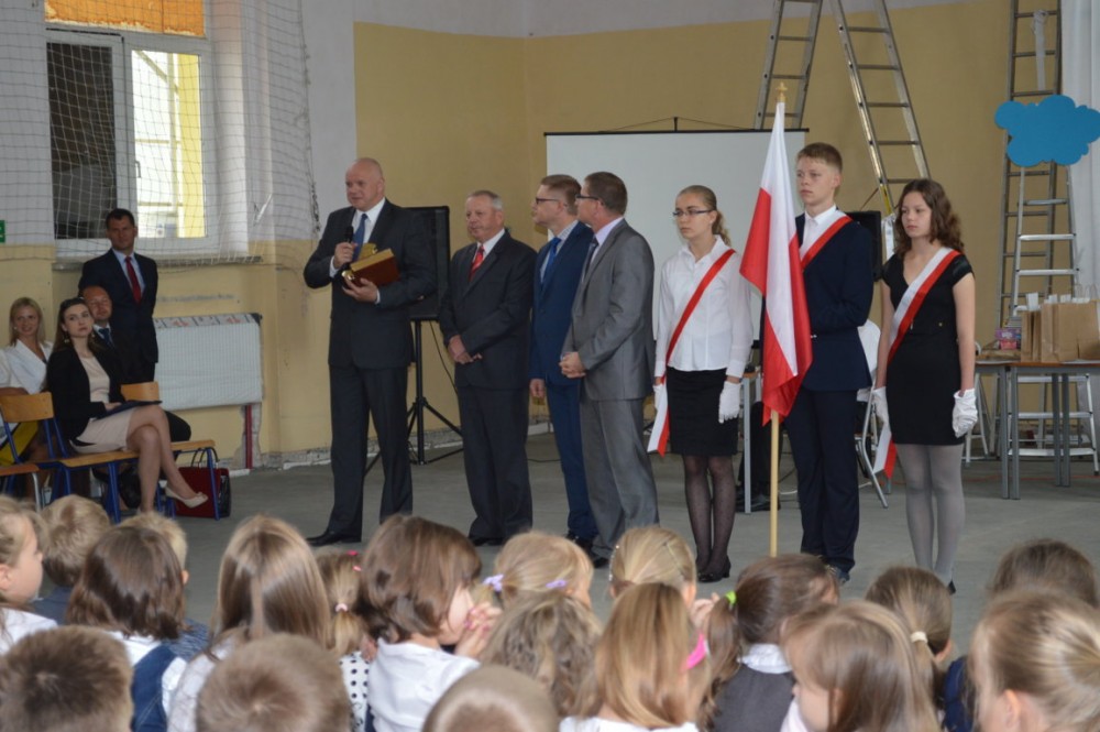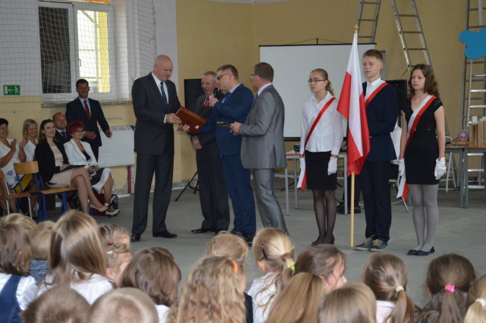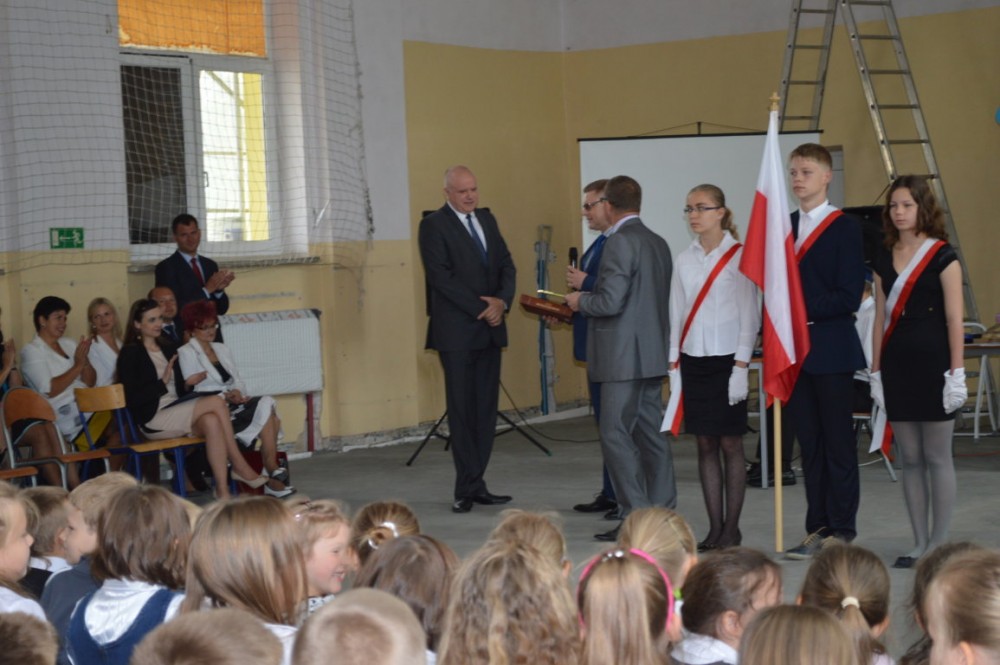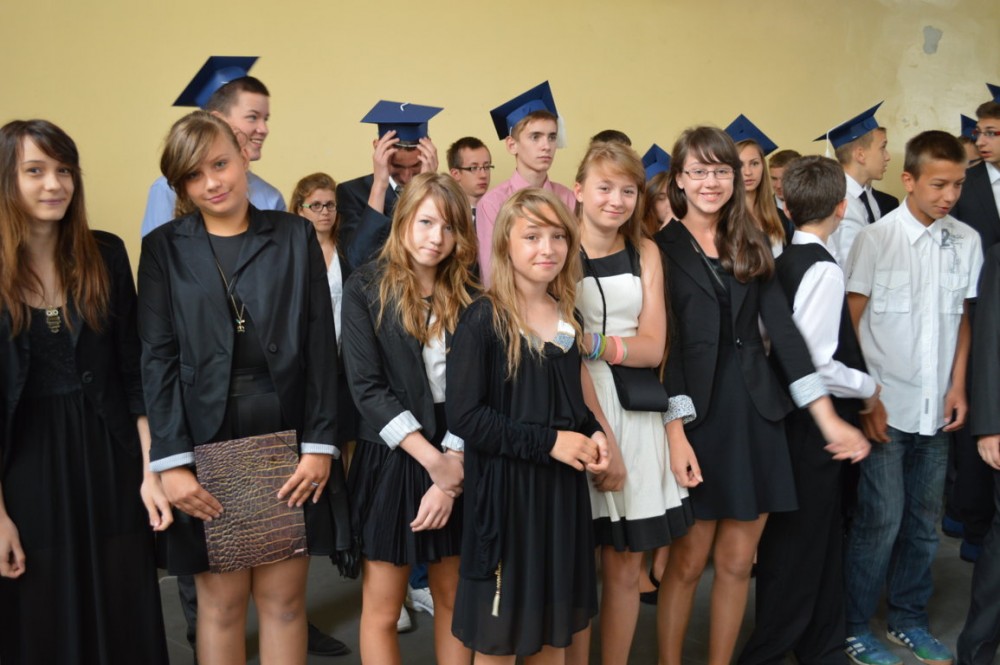 Podczas akademii dyrekcja i nauczyciele pożegnali uczniów klas szóstych szkoły podstawowej oraz trzeciej klasy gimnazjum.