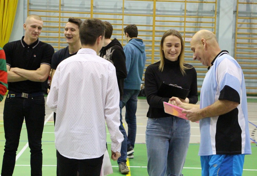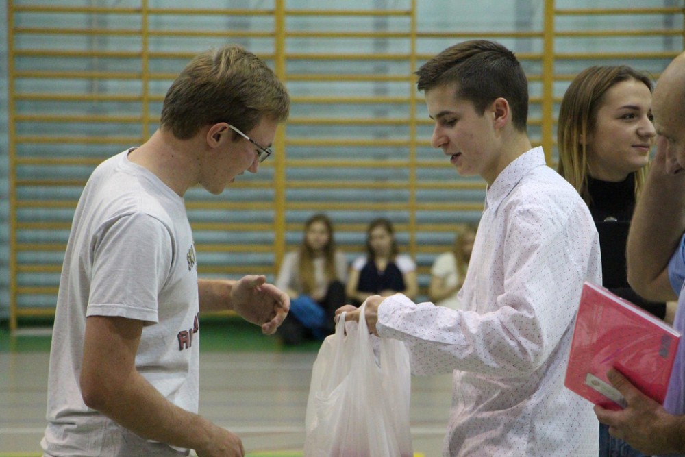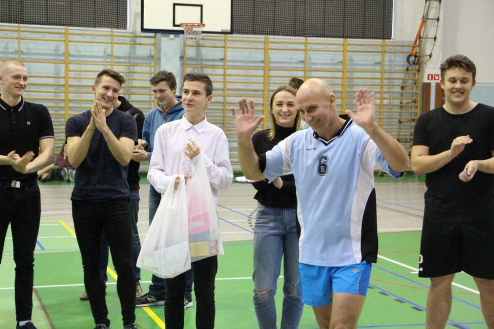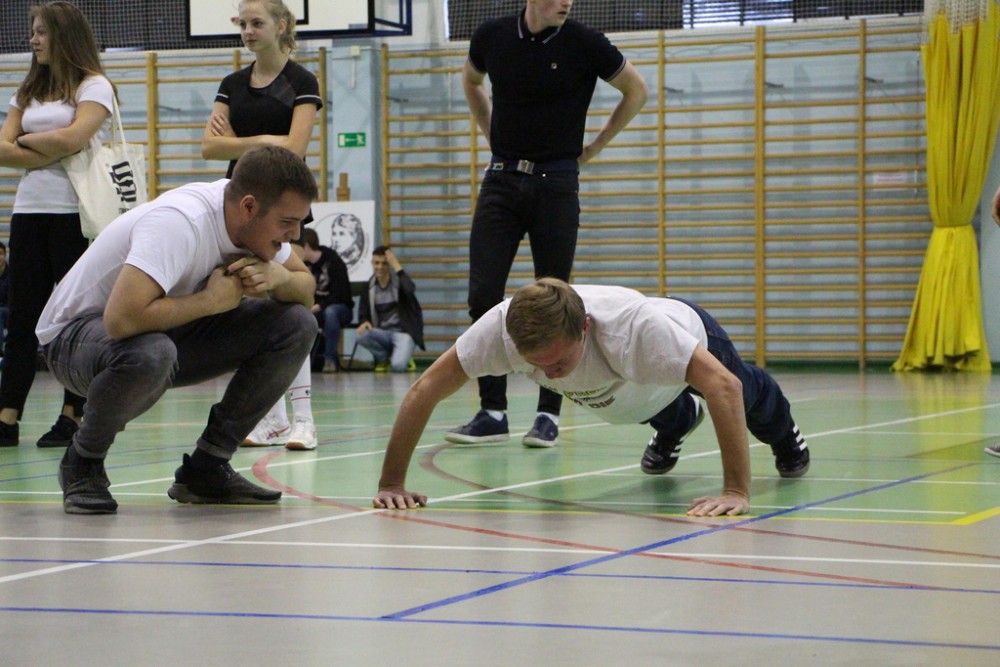 Teraz pora na zdjÄ™cia ze spotkania belfrów z drużynÄ… uczniów, meczu i konkursu koszykówki oraz mÄ™skiej rywalizacji na liczbÄ™ wykonanych pompek, którÄ… bezapelacyjnie wygraÅ‚ 55-letni (jak ten czas leci) nauczyciel wf Tadeusz Hrynaszkiewicz.