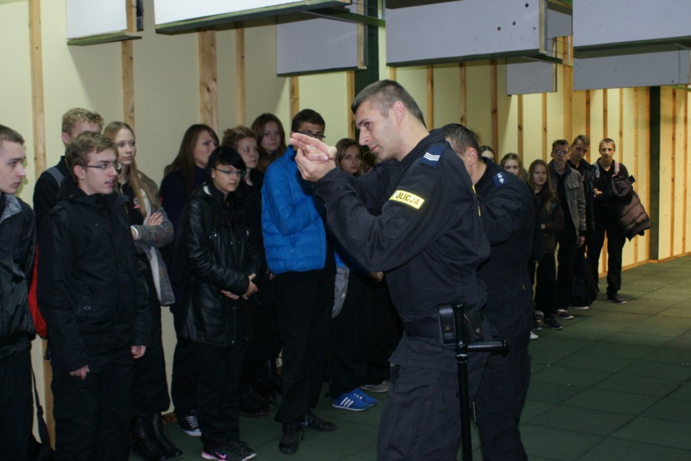 To już kolejne spotkanie suwalskich policjantów z uczniami klas mundurowych ZakÅ‚adu Doskonalenia Zawodowego w SuwaÅ‚kach. Uczniowie dowiedzieli siÄ™, jakie warunki trzeba speÅ‚nić, aby zostać policjantem, zobaczyli, jak może wyglÄ…dać interwencja, obserwowali techniki obezwÅ‚adniania agresora i obejrzeli policyjnÄ… strzelnicÄ™.