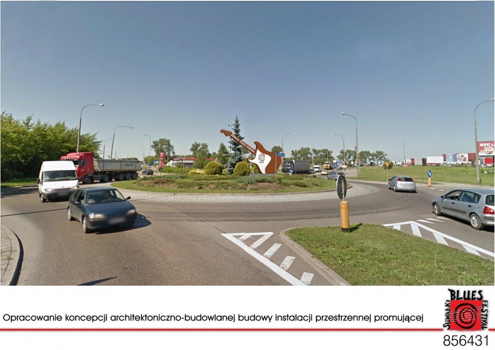 SuwaÅ‚ki od kilku lat sÄ… miastem bluesa. NawiÄ…zujÄ…c do tego faktu, suwalscy urzÄ™dnicy postanowili odpowiednio oznakować drogi wjazdowe. Najpierw ogÅ‚oszono konkurs na najciekawszÄ… instalacjÄ™ architektonicznÄ…, która witać ma kierowców wjeżdżajÄ…cych do miasta od póÅ‚nocy. Wtedy wygraÅ‚o biuro projektowe ARH+. Za swój projekt otrzymaÅ‚o nagrodÄ™ w wysokoÅ›ci 3 tys. zÅ‚. Wyróżnienie objęło również zaproszenie do opracowania peÅ‚nej dokumentacji projektowej.