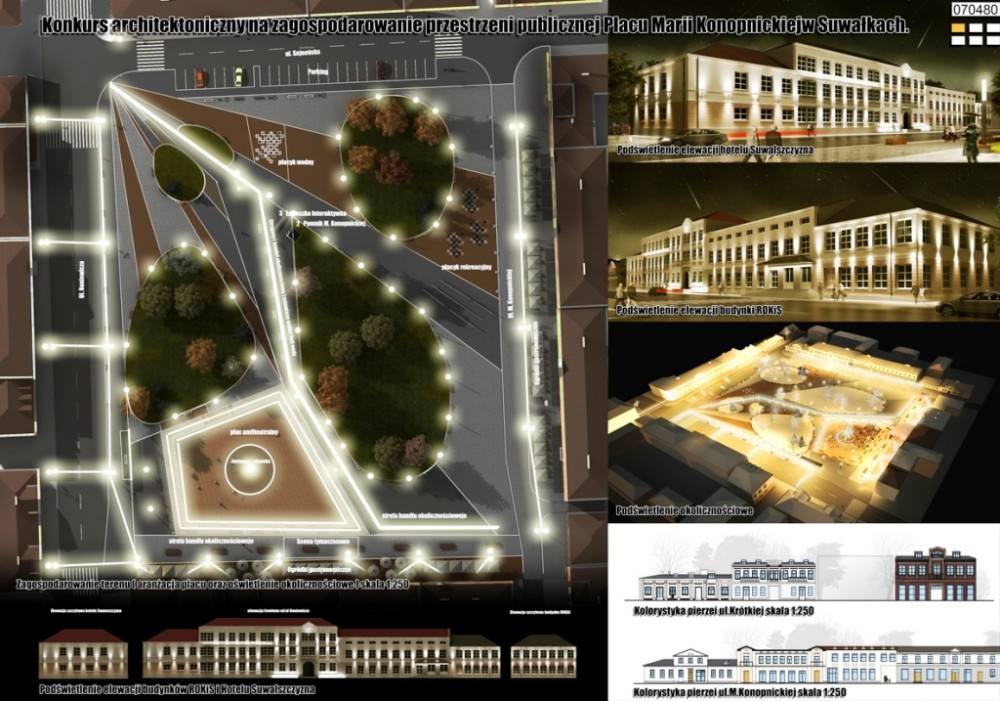 W trakcie opracowywania projektu budowy placu Marii Konopnickiej powstał plan odrestaurowania wszystkich kamienic wokół placu. Były nawet wizualizacje pokazujące wyremontowane budynki ROKiS-u i hotelu „Suwalszczyzna” z efektownym podświetleniem. I faktycznie, ZBM do czasu otwarcia placu wiosną ubiegłego roku uporał się z remontem kamienic. Kamienice przy ul. Sejneńskiej i Konopnickiej zostały odmalowane. Zakończyła się również budowa budynku suwalskiego przedsiębiorcy na rogu Noniewicza i Krótkiej. Okolica wypiękniała ale największe kamienice pozostały bez koniecznych zmian.
