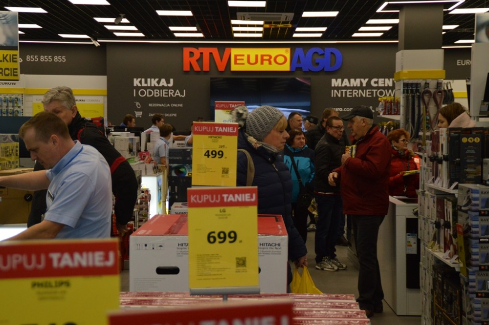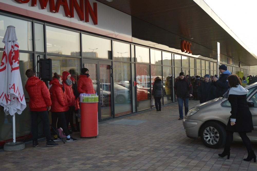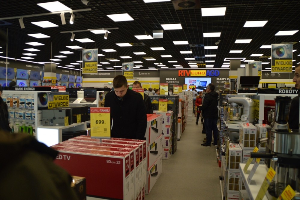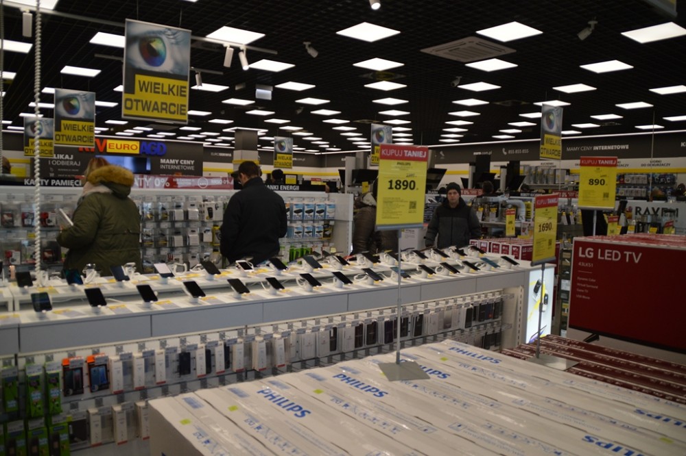 Jako pierwsza zaprosiÅ‚a do siebie wyposazona w 7 stanowisk, w których można pÅ‚acić za zakupy, w tym 3 kasy samoobsÅ‚ugowe spożywcza Biedronka, Po niej ruszyÅ‚ szturmowany przez miÅ‚oÅ›ników nowoÅ›ci i praktycznego sprzÄ™tu RTV EURO AGD i wreszcie zostaÅ‚y otwarte kosmetyczny Rossman, który ma w strategii maksymalny rozwój sieci oraz obuwnicze CCC, imponujÄ…ce nie tylko asortymentem, ale i wielkoÅ›ciÄ… salonu.