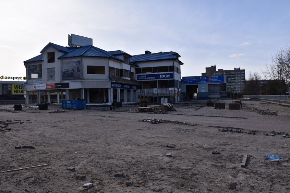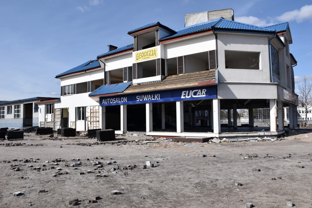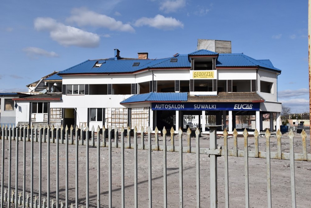 Liczący prawie 7 tys. m kw. teren, na którym od lat 90. minionego wieku funkcjonował salon samochodowy ełckiej spółki Eucar, w którym ostatnio można było kupić samochody marek Hyundai i Ford oraz stacja kontroli i serwis pojazdów, w ubiegłym roku kupił koncern Aldi. Jak widać na zdjęciach, nowy właściciel przystąpił już do rozbiórki architektonicznego koszmarka, który szpecił krajobraz u zbiegu Pułaskiego i Tysiąclecia Litwy.