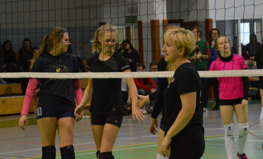 O ile sam Słodki Mecz jest już wieloletnią tradycją, to za taką ciężko jest uznać fakt, ze pod siatką uczniowie najpierw w żeńskim, a potem męskim składzie, nie dali szans nauczycielom. Tych drugich mogło stresować, że sędzią był matematyk Jan Żukowski. Przy takim arbitrze germanistka Urszula Andruczyk, wuefiści Andrzej Putra, Andrzej Kaszkieli i Tadeusz Hrynaszkiewicz, anglista Maciej Makarewicz i informatyk Marek Gałaszewski mieli olbrzymie kłopoty z odbiorem i rozegraniem, a w konsekwencji bardzo rzadko mieli sposobność zaatakować młodzież.