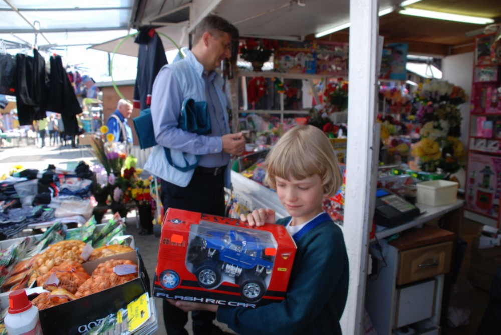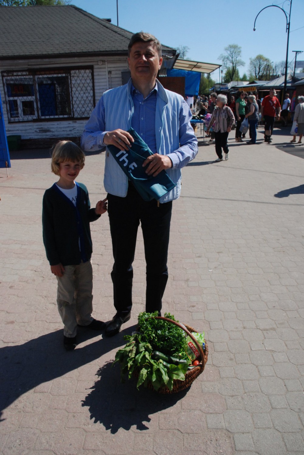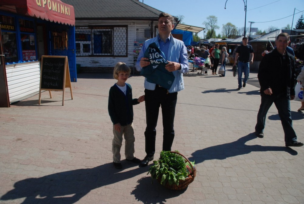 Janusz Palikot na suwalskim bazarze kupiÅ‚ saÅ‚atÄ™, pietruszkÄ™, pomidory, ogórka i ryby. A jego syn „naciÄ…gnÄ…Å‚” tatÄ™ na zabawki: samochód i quada.