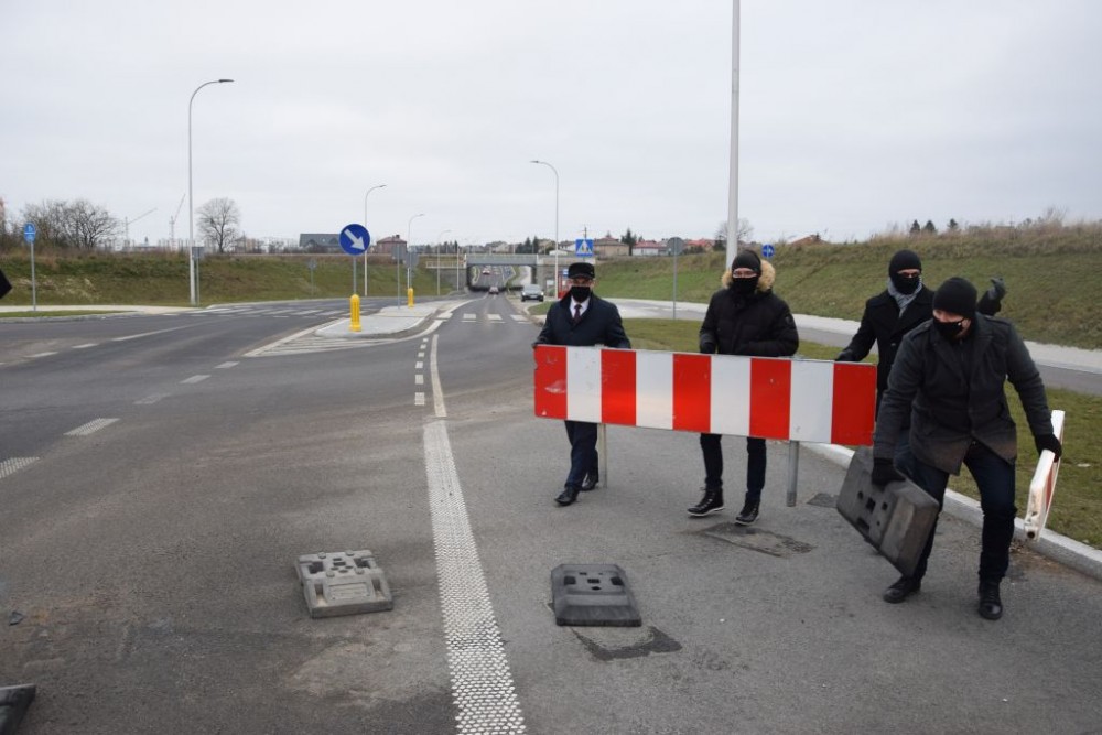 W symbolicznym demontażu barier drogowych przez pracowników firmy PDM SuwaÅ‚ki, która dokoÅ„czyÅ‚a budowÄ™ drogi wziÄ…Å‚ udziaÅ‚ CzesÅ‚aw Renkiewicz, Prezydent SuwaÅ‚k.