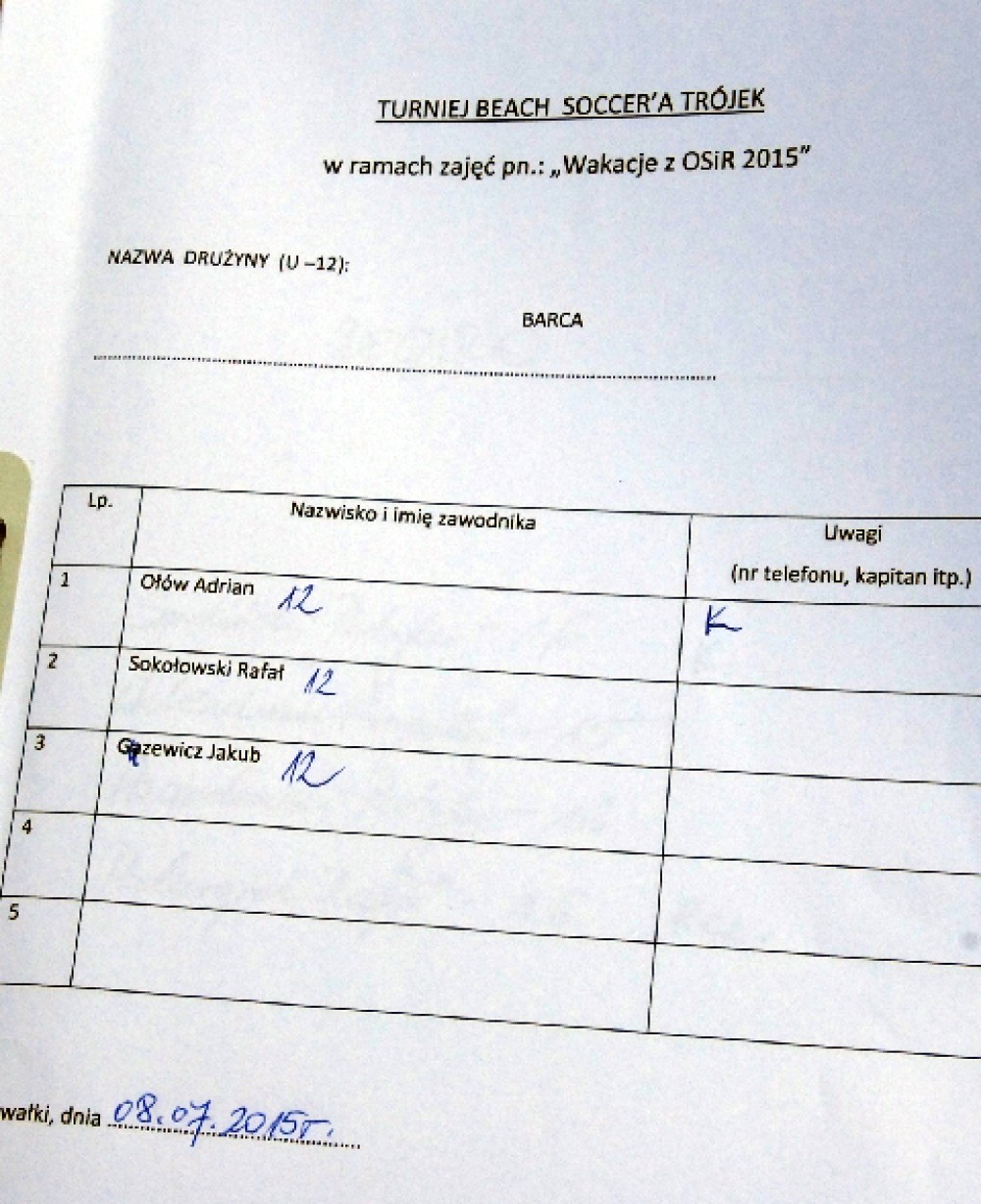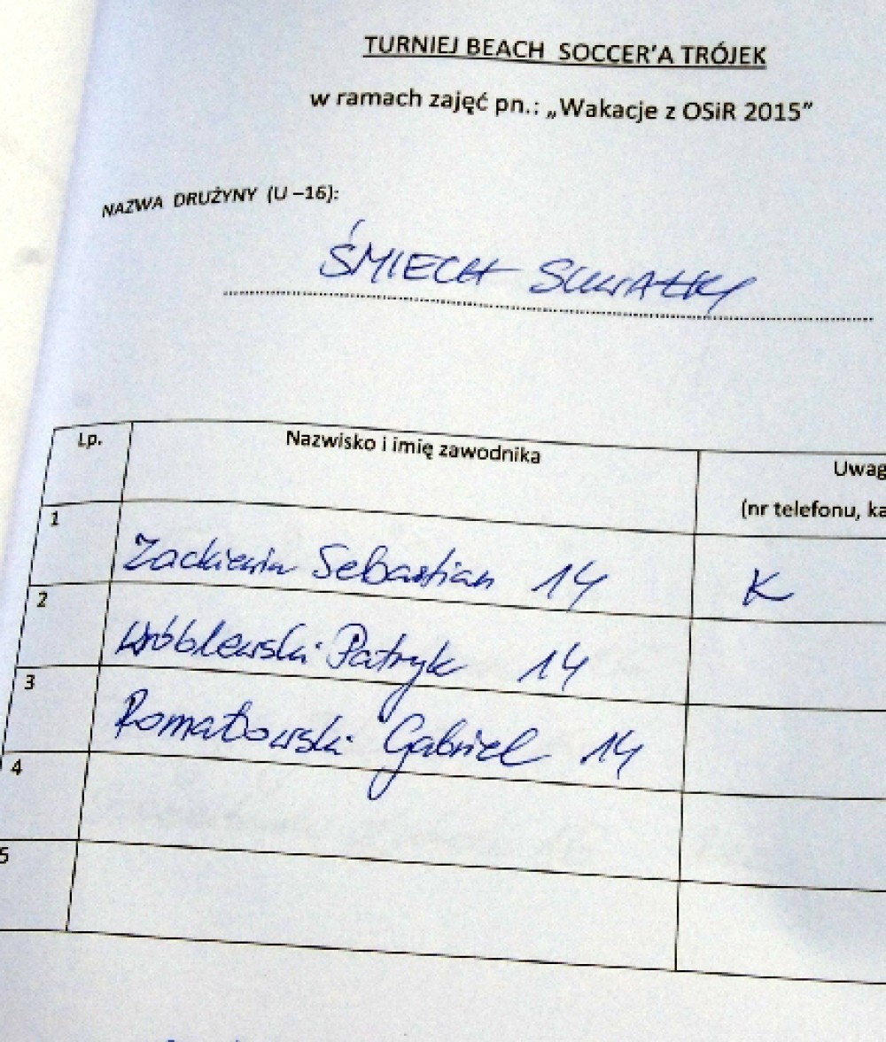 Wakacyjny turniej beach soccer`a trójek U-12 i U-16