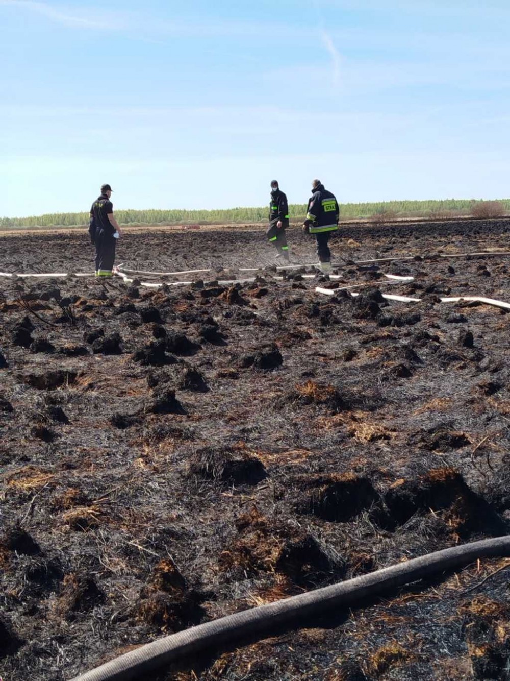 Strażacy z Raczek, Filipowa i Potaszni dogaszali pożar w Biebrzańskim Parku Narodowym