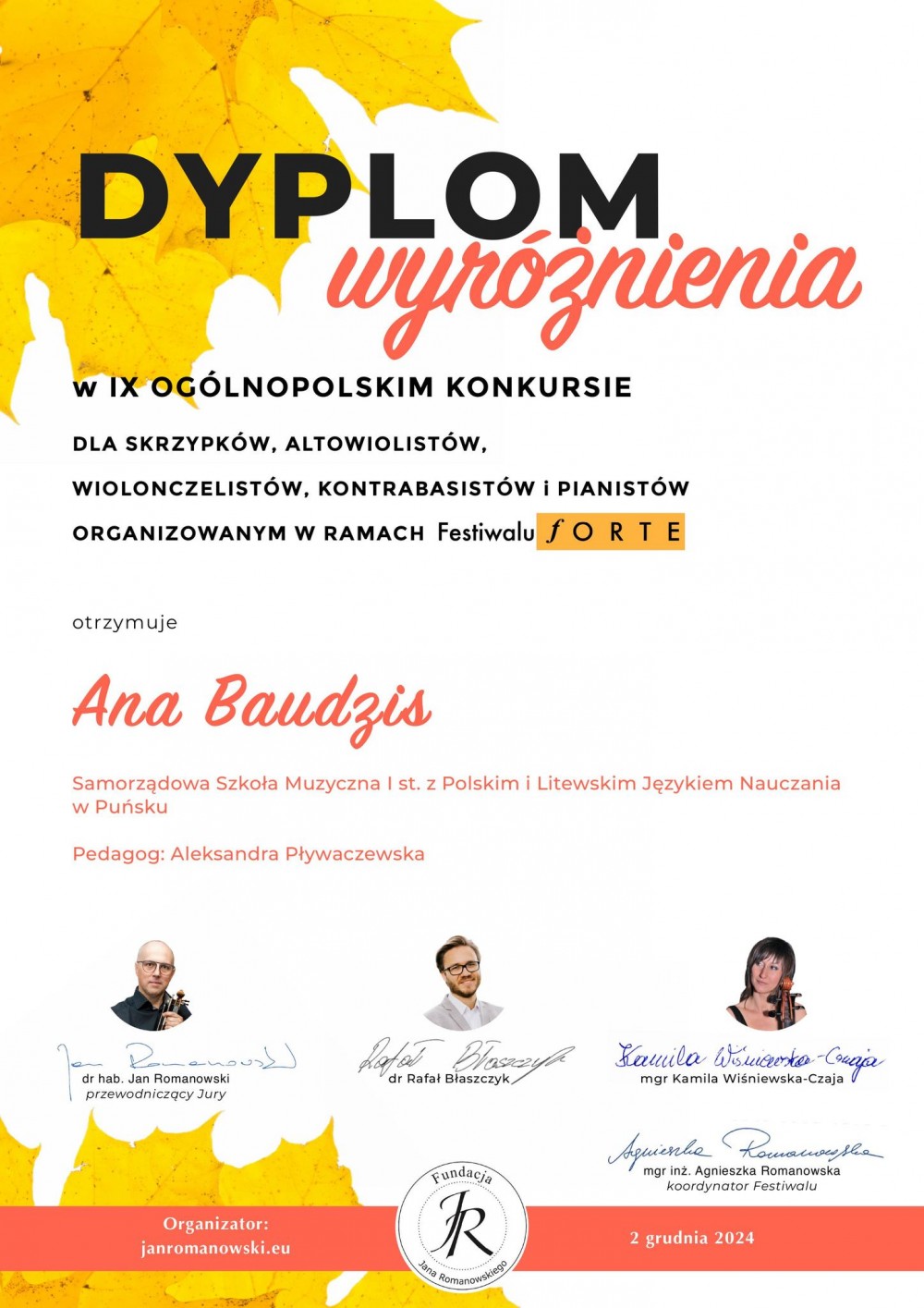 Sukcesy skrzypaczki szkoły muzycznej w Puńsku