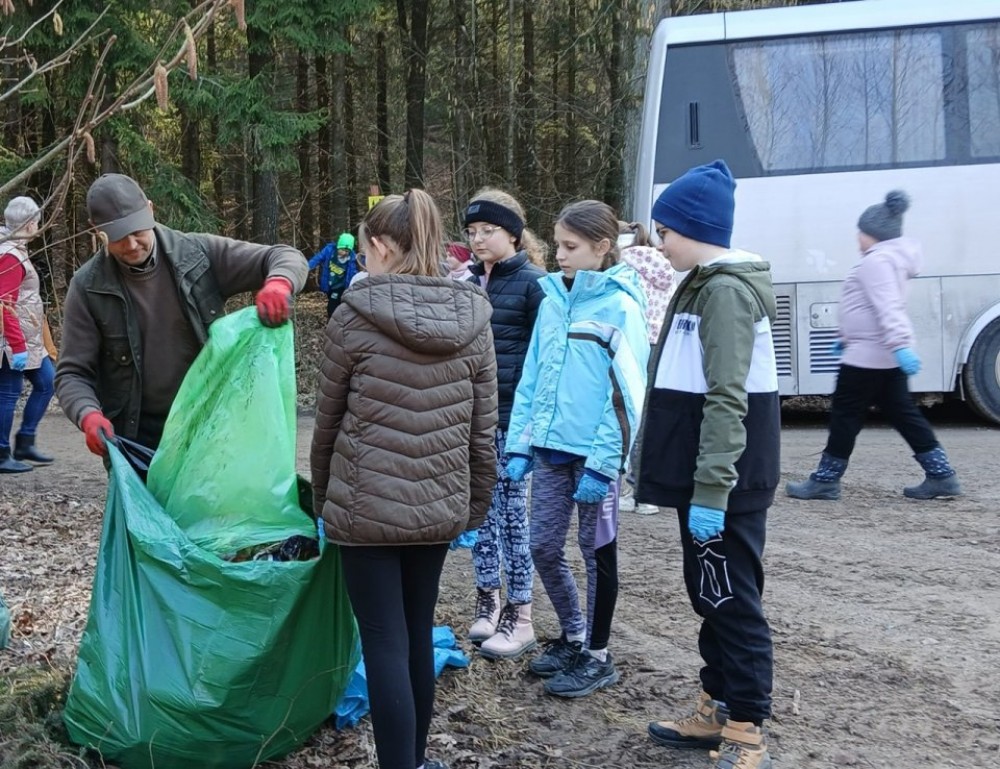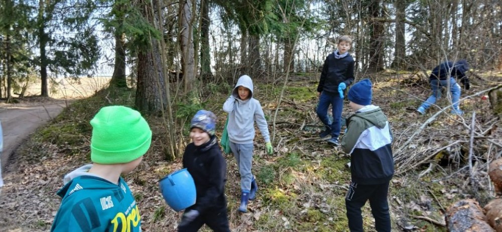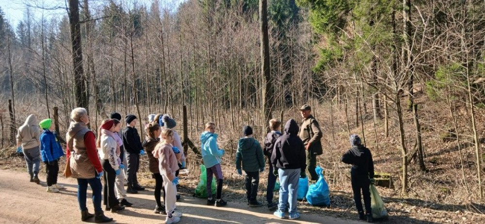 Uczniowie SP Wiżajny sprzątali las