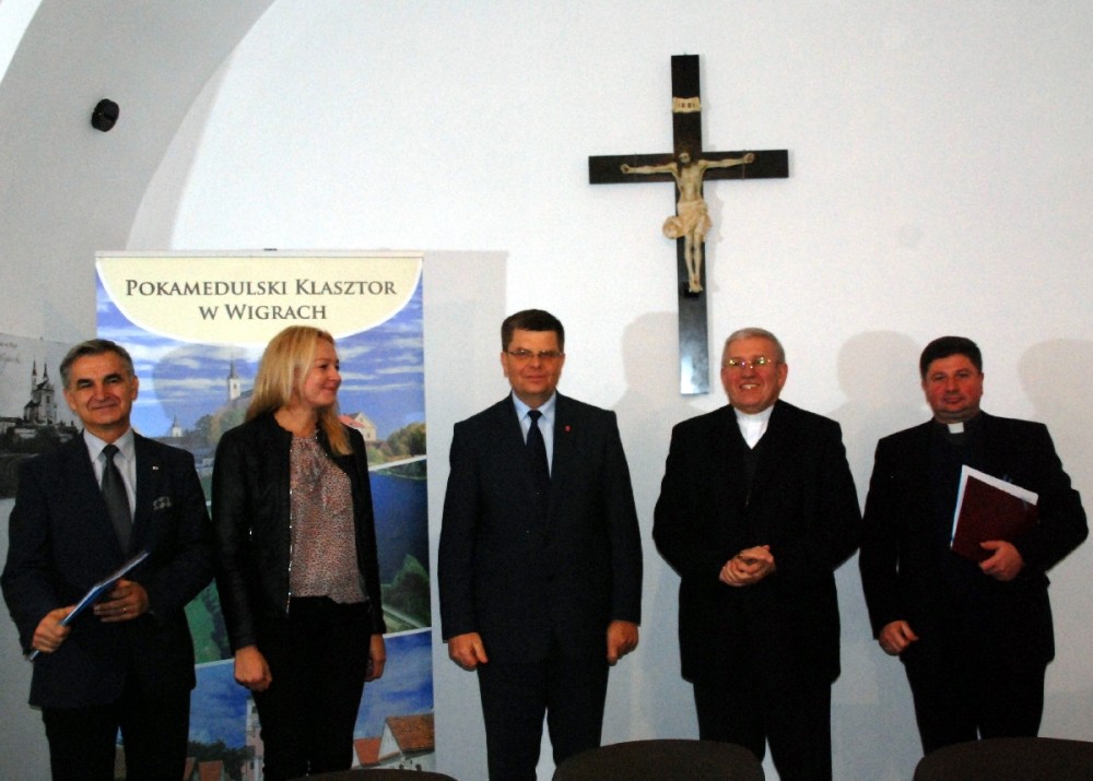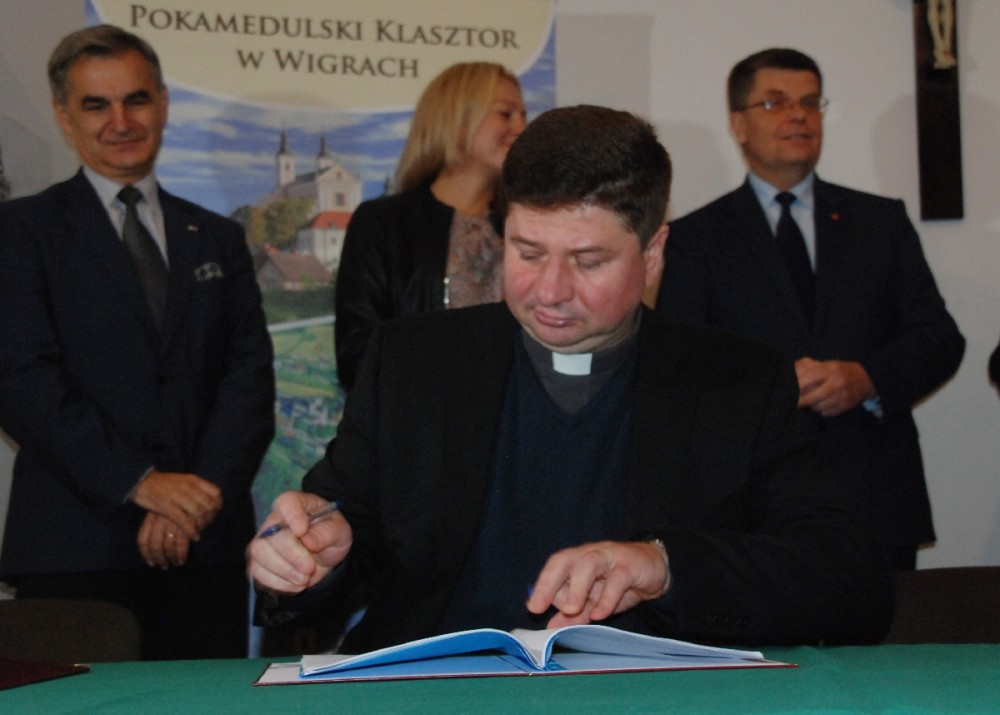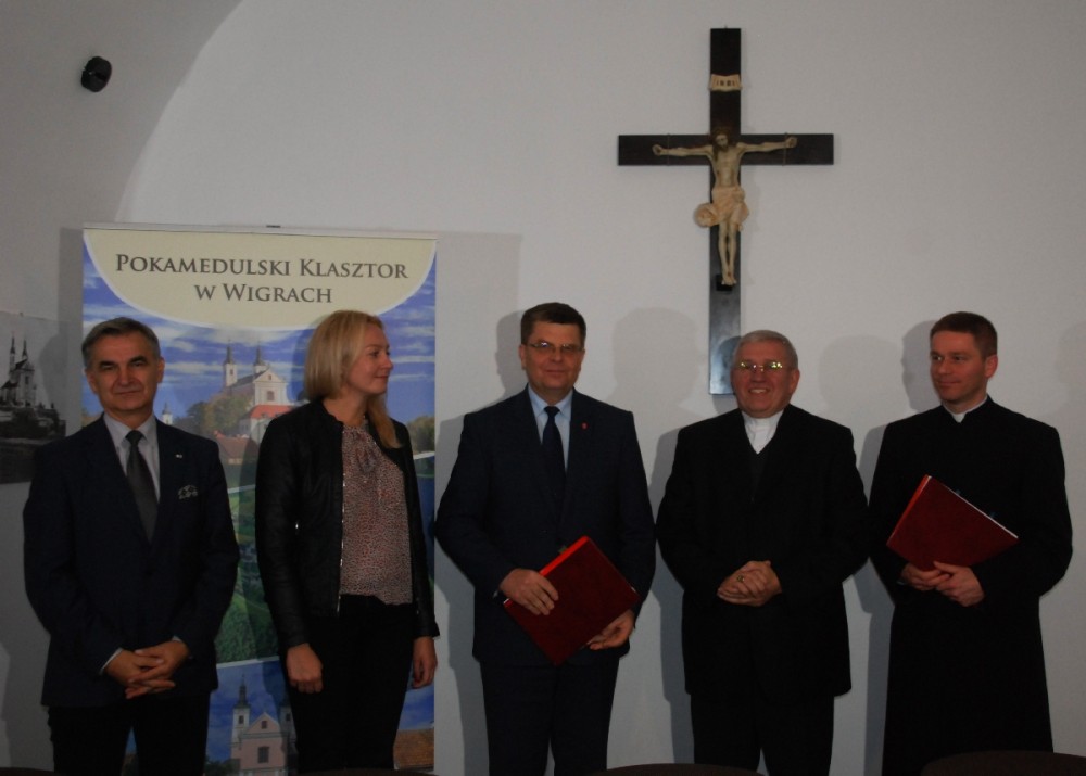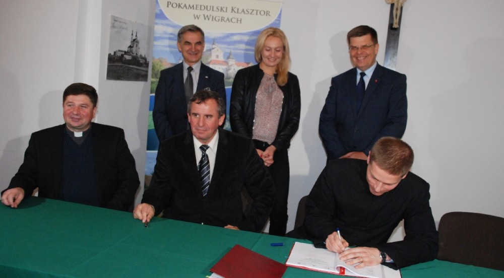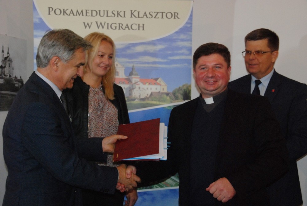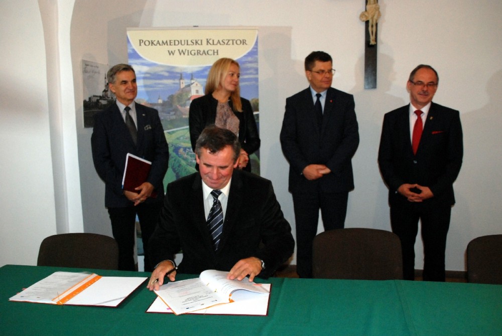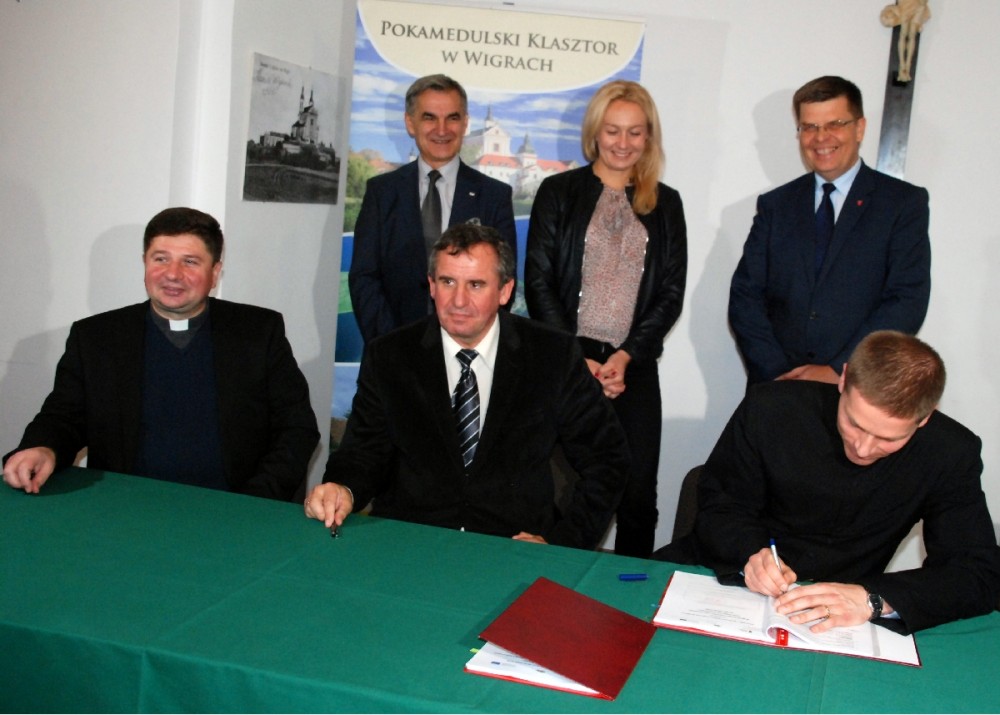 Podpisanie umów na odbudowÄ™ i modernizacjÄ™ klasztoru w Wigrach, kaplicy w Studzienicznej k. Augustowa i Muzeum Marii Konopnickiej w SuwaÅ‚kach