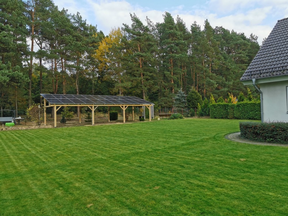 Nasze instalacje montowane są na zadaszeniach (wiatach), które nie zajmują przestrzeni użytkowej, w przeciwieństwie do klasycznych instalacji PV na gruncie. To idealne rozwiązanie, jeśli nie chcesz rezygnować z trawnika, ogrodu czy podjazdu.