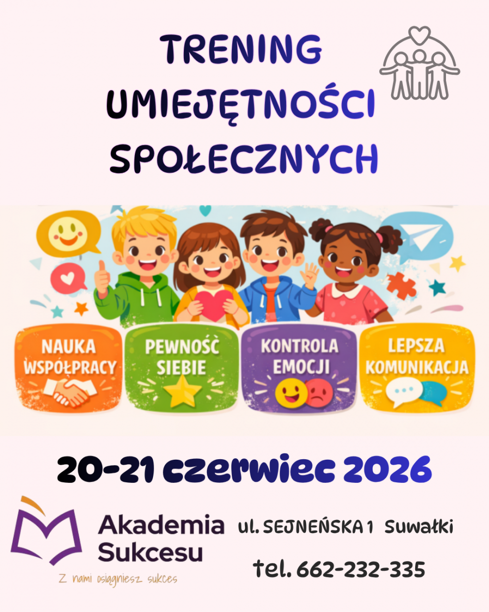 TRENING UMIEJĘTNOŚCI SPOŁECZNYCH (TUS) w Suwałkach już w dniach 20-21.06.2026 ⏰Jest to 2-dniowe szkolenie rozwijające kompetencje potrzebne w relacjach z innymi (w szkole, pracy czy życiu codziennym)